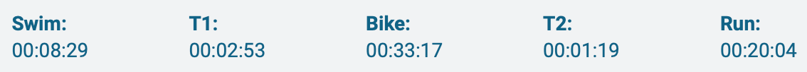 Good news: 6th, 5th, and 2nd fastest swim, bike, and run times, respectively.