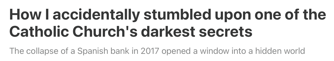 Here’s another (very long) sentence: “This is the previously untold story of how these men hijacked Banco Popular and transformed it into a cash machine for Opus Dei, the controversial religious sect they belonged to — transforming this tiny, secretive religious movement into one of the most powerful forces in the Catholic Church, bankrolling the creation of a vast recruitment network targeting children and vulnerable teenagers, and creating a beachhead in the world of U.S. politics that would make Opus Dei a secret but critical force behind the recent erosion of reproductive rights and other civil liberties.”