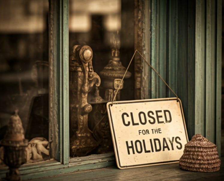 We decided no. A big push to get a lot of things done by the 20th—and there really were a lot of things to do—and then coast into 2025. Functionally, “being off” means we don’t have our morning meeting. If something urgent comes up or the vital biweekly newsletter needs to be written, we’ll take care of it. As a two-person business, time off is as much of a state of mind as it is a physical reality. And that’s just fine.